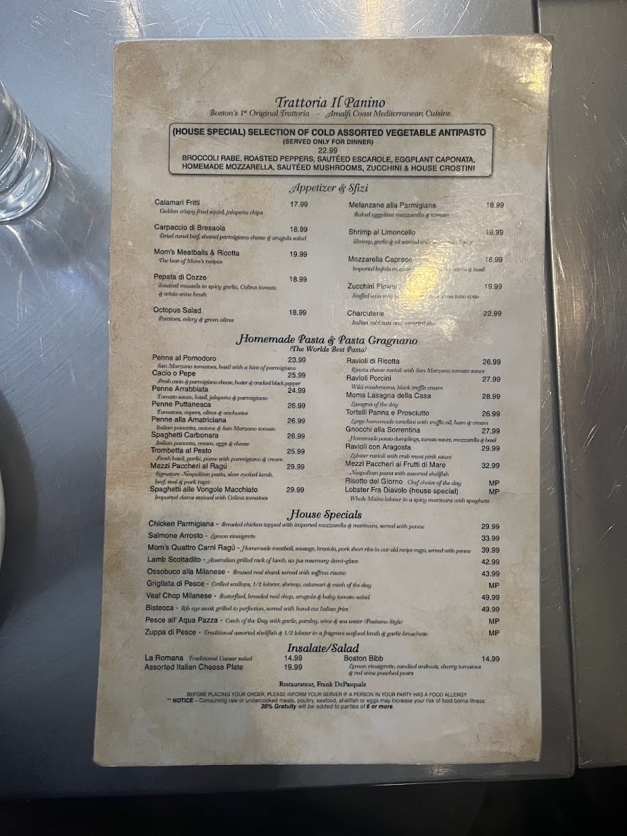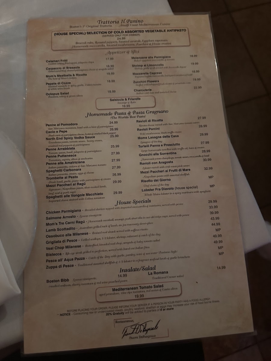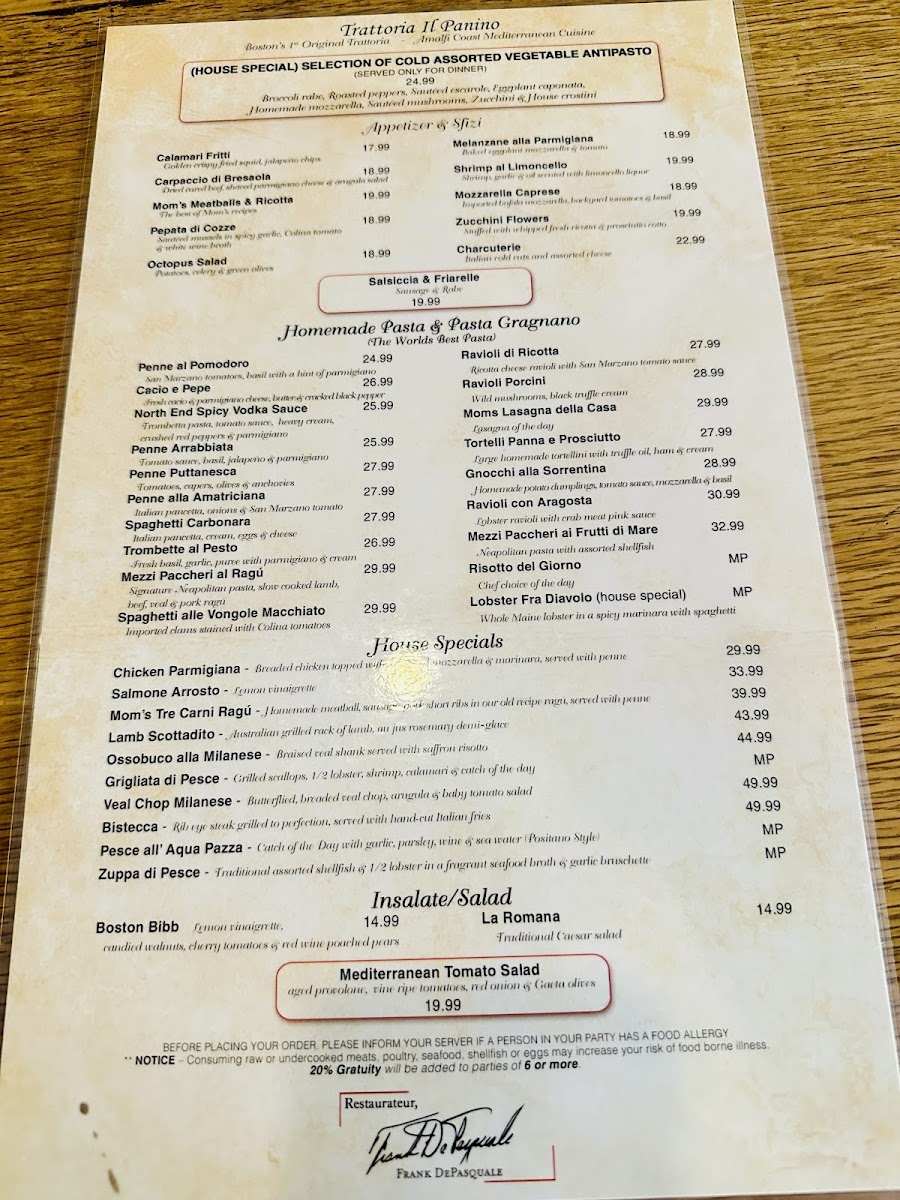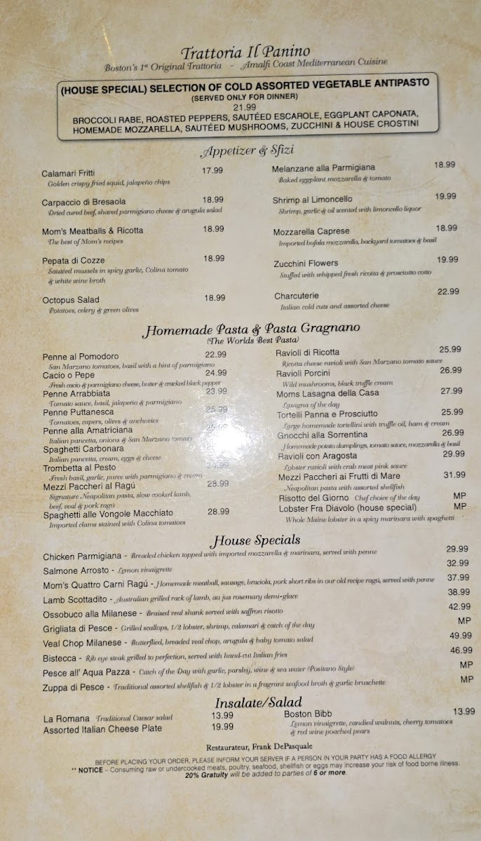 Welcome to Trattoria Il Panino, a gem nestled in Boston's North End, renowned for its authentic Italian cuisine. The menu is a culinary voyage, starting with the irresistible Cold Assorted Vegetable Antipasto, a flavorful medley perfect for sharing.