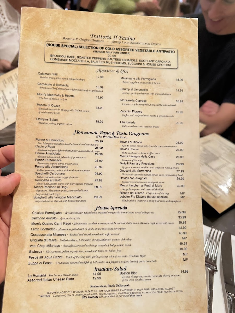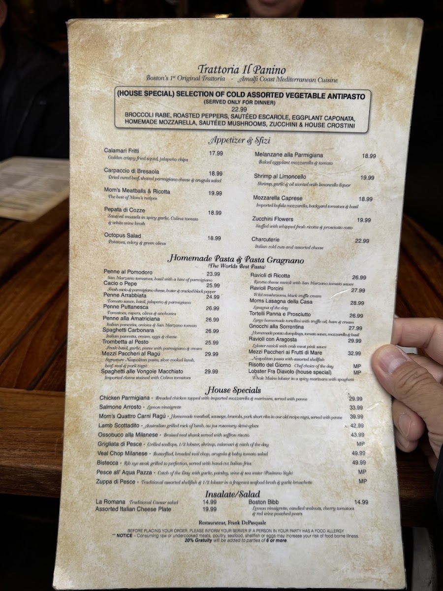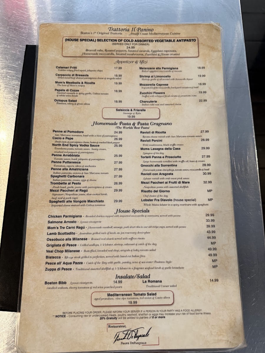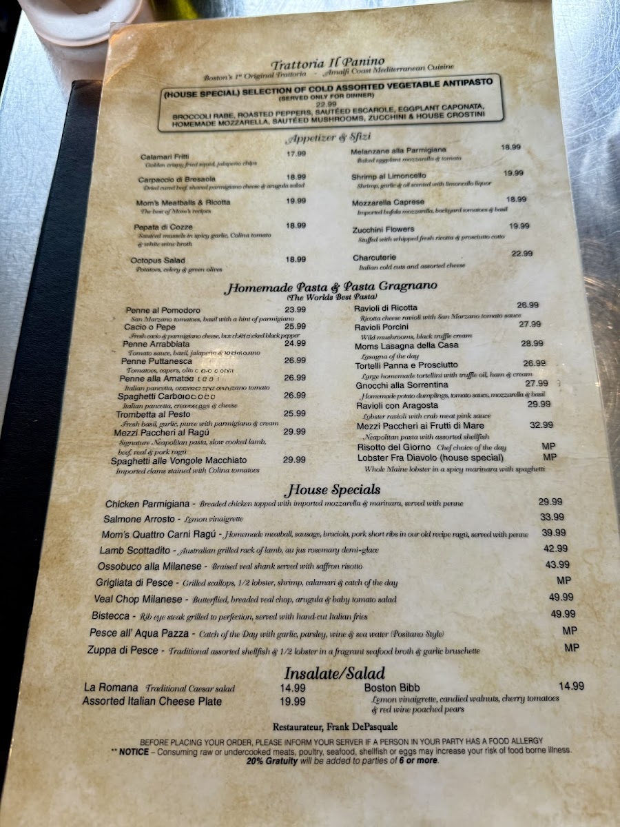 Welcome to Trattoria Il Panino, a gem nestled in Boston's North End, renowned for its authentic Italian cuisine. The menu is a culinary voyage, starting with the irresistible Cold Assorted Vegetable Antipasto, a flavorful medley perfect for sharing.